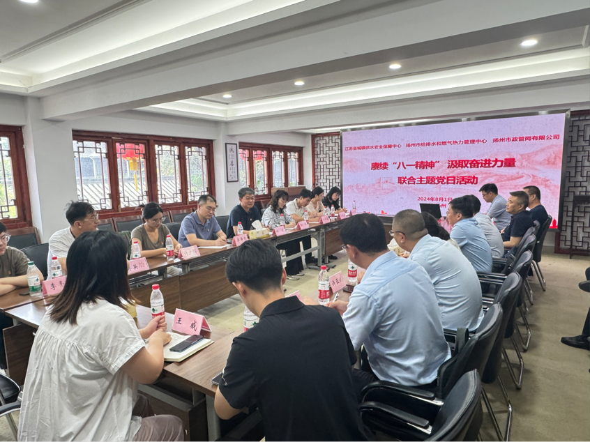 8月1日上午,江蘇省城鎮供水安全保障中心、揚州市給排水和燃氣熱力管理中心及揚州市政管網公司聯合開展“賡續‘八一精神’,汲取奮進力量”主題黨日活動。省城鎮供水安全保障中心主任徐建,市住建局四級調研員駱俊東,城控集團黨委委員、副總經理夏長明,市給排水和燃氣熱力管理中心、管網公司主要負責人和相關人員參加活動。