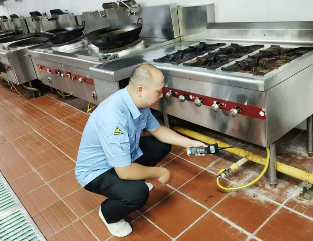 安檢人員秉持著嚴謹認真的態度,對學校食堂的燃氣管道進行了全方位的檢測。重點排查燃氣管道是否有腐蝕、破損、裂縫等跡象,不放過任何一個可能存在安全隱患的細節。在檢查過程中,安檢人員不僅專注于硬件設施的檢查,還向學校工作人員詳細講解燃氣安全使用知識,強調燃氣設備日常維護的注意事項,叮囑要定期檢查燃氣管道和設備的密封性、保持通風,避免在燃氣設施周圍堆放易燃物品等。對食堂員工現場講解了遇到燃氣泄漏等緊急情況時,須迅速關閉燃氣閥門、打開門窗通風、切勿使用明火和電器設備、及時撤離現場并撥打緊急救援電話等避險應急措施。