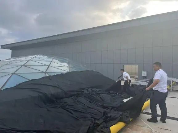 臺風過后,資產公司第一時間組織對各處資產和物業項目開展巡查,及時掌握項目受損情況,指導各部門開展修復工作。一是組織各部門開展復工安全檢查,重點檢查消防、排水泵、排水管網、戶外電力等各類設備設施;二是組織各部門做好場地積水排除、堵塞雨水口清理、倒伏路樹和項目主次干道落葉、混合垃圾的清運等工作;三是對部分仿古建筑的屋面瓦片脫落在做好安全防護措施的基礎上,抓緊制定修復方案并上報實施。