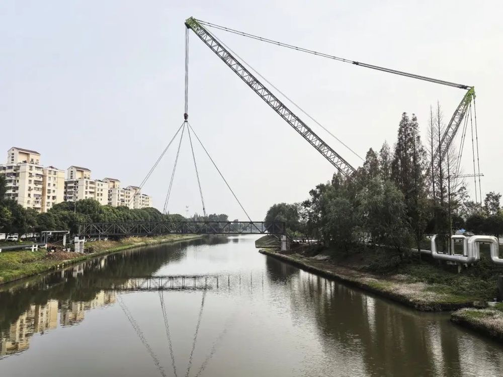 10月28日,儀化生活區供熱一次管網及熱力站改造項目迎來重要施工節點——胥浦河過河桁架順利吊裝。