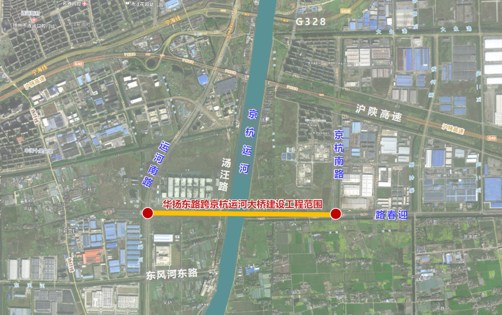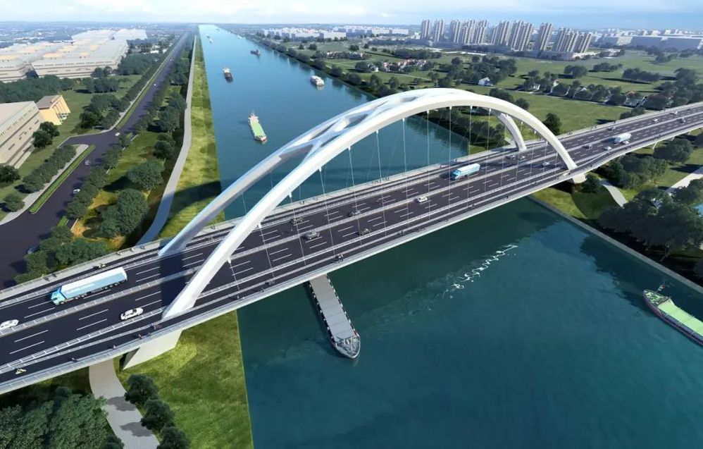 華揚東路跨京杭運河大橋建設工程采用雙向六車道標準,設計速度為50km/h,標準段紅線寬度40m,全長1.92km。其中,新建橋梁1座,主橋采用200m提籃拱橋,引橋采用混凝土連續箱梁。總投資約4.5億元。華揚東路是揚州中心城區規劃橫向城市主干路,是“二十五橫十七縱”主干路網的重要組成,是溝通經濟開發區與廣陵區的重要通道。