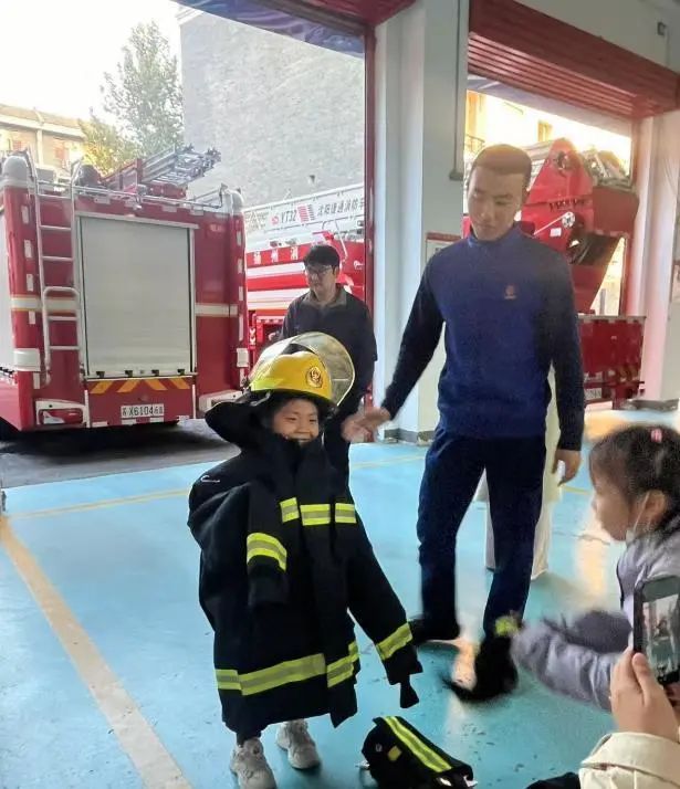 為了更具象化讓親子家庭了解各種消防器材設備,在消防隊員的帶領下,小朋友們親身體驗穿戴防護服、觀摩消防車等環節,了解部分救援器材在滅火和救援任務中的用途,孩子們感受到消防員們的英勇與付出,興奮之情溢于言表。