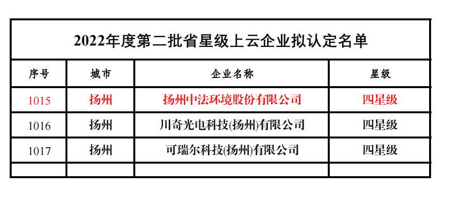 12月17日,揚州中法環境在數字化轉型的征途中再添新榮譽,成功獲得揚州經濟技術開發區頒發的“四星上云”政府補貼。這一殊榮不僅是對揚州中法環境在“智能化改造”與“數字化轉型”領域卓越成就的認可,更是對公司積極引領行業高質量發展、勇攀科技高峰的崇高贊譽。
