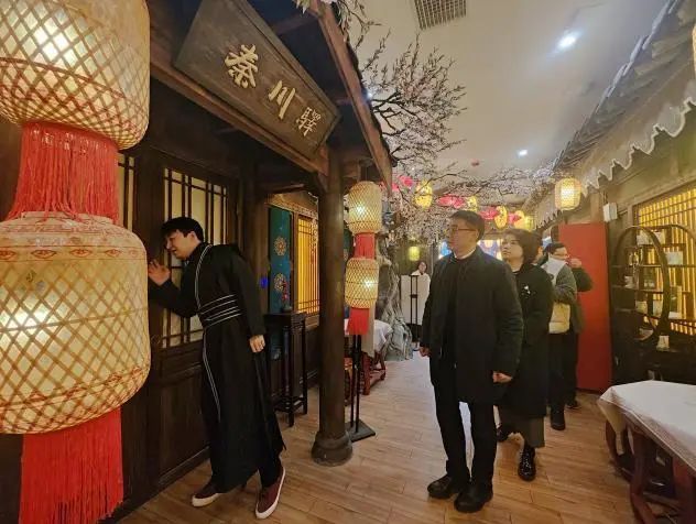 隨后,殷仕寶一行調(diào)研了“浮光”機關(guān)劇場,店內(nèi)獨特的謎題設(shè)計、精美的場景布置以及緊密圍繞地方特色打造的故事線給大家留下了深刻的印象。殷仕寶在與資產(chǎn)公司主要負責(zé)人深入交流中,了解了該項目在團隊建設(shè)、市場推廣方面的情況和面臨的挑戰(zhàn)。殷仕寶表示這種將傳統(tǒng)文化與現(xiàn)代科技相結(jié)合的沉浸式體驗?zāi)J剑瑸槲幕瘎?chuàng)新產(chǎn)業(yè)帶來了新的思路和啟發(fā)。