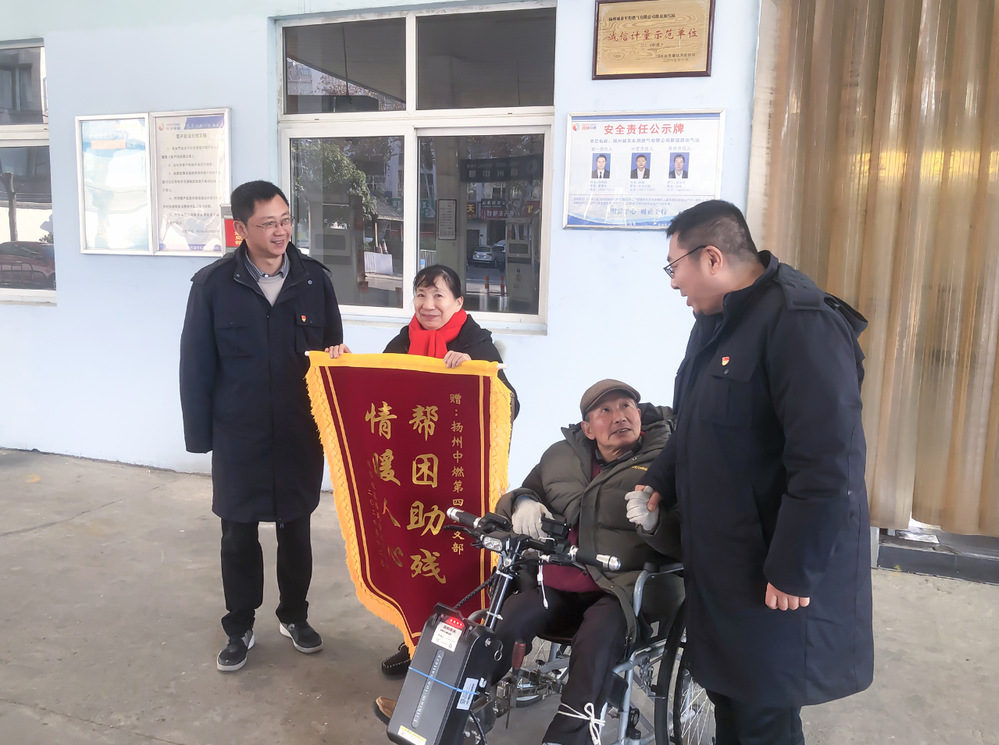 近日,連福社區徐鴻林和愛人將一面寫有“幫困助殘 情暖人心”字樣的錦旗送到揚州中燃公司第四黨支部,以表達對藍焰老兵志愿者對其日常生活的照料。