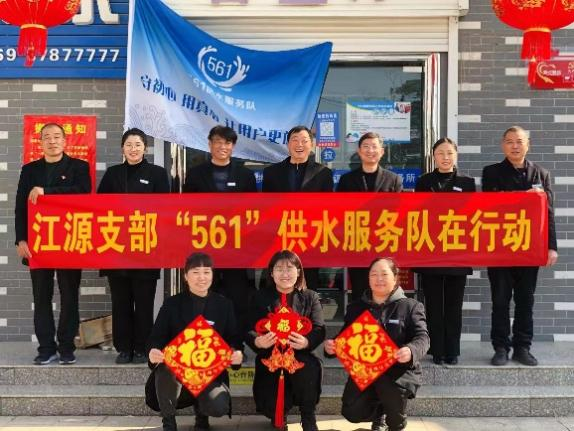 長江水務江源公司黨支部“561”供水服務隊成立于2022年,依托團市委“青年文明號”榮譽團隊為載體,秉承“守初心、用真心、讓用戶更放心”的服務宗旨,面向廣大鄉鎮用戶,塑造了一支真情服務用戶、心系社會的團隊。他們堅持供水人的初心,把“供水服務,為民解憂”作為服務工作的出發點和落腳點,創新服務措施,優化服務延伸,進一步提升了用戶的幸福感和滿意度,展現了新時代供水人的良好形象?!?61”供水服務隊以隊長吳留毅同志名字諧音命名,“5”代表成立時的五名青年班組成員,“6”代表六項便民“心”舉措,“1”代表踐行一顆黨員“初心”,提供細心、愛心、耐心便民服務舉措,讓用戶放心、安心、舒心用水。