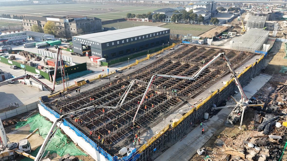 1月1日,萬福快速路東延建設(shè)工程項目利用元旦假期進(jìn)行全線最寬現(xiàn)澆箱梁混凝土澆筑施工。此次澆筑區(qū)域為Pm18-Pm21聯(lián)底腹板,橋?qū)?7.16到44.26米,采用泵送C50混凝土,共計3300方,本次澆筑1800方,澆筑用時約20小時。