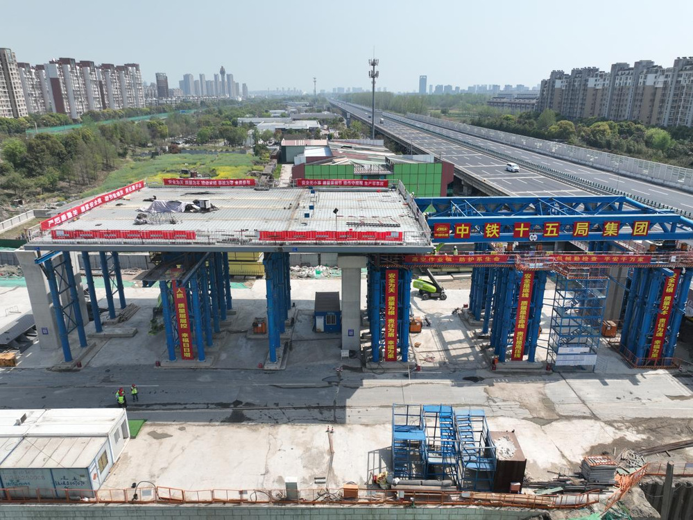 該段鋼箱梁全長112米,整幅寬度25.66米,主跨長度60m,整橋重量達1950噸,采用“步履式頂推”工藝,施工過程中無需中斷下方交通通行,可最大程度減少對社會交通的影響。此次鋼箱梁頂推持續時間預計2個月左右。