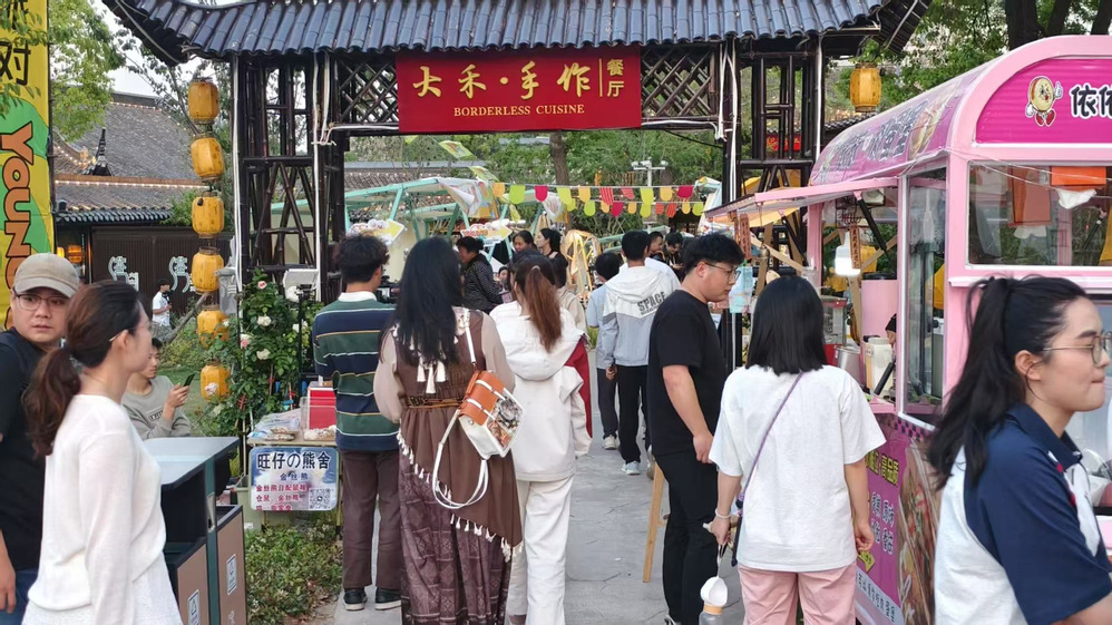 市集內匯聚南北風味小吃,烤肉在炭火上跳躍,肉香裹挾著孜然的辛香直鉆鼻腔;琥珀色的精釀啤酒泛著綿密泡沫,麥芽香與果香交織,瞬間激活味蕾。