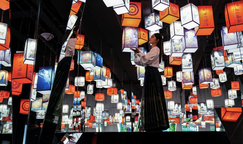 展館以《山海經(jīng)》中記載的128只奇異神獸為核心,通過數(shù)字雕塑、全息投影、交互裝置等前沿技術(shù),將古籍中的文字轉(zhuǎn)化為可感知的立體奇觀。比翼鳥展翅時(shí)羽翼流光溢彩,狍鸮(饕餮)的咆哮聲震耳欲聾,帝江的混沌之舞在光影中若隱若現(xiàn)……18個(gè)主題展廳猶如18個(gè)平行時(shí)空,其中最令人驚艷的“四季”展廳,只需佩戴特制眼鏡,便能親歷春日百花綻于指尖、冬雪紛飛沾衣欲濕的四季流轉(zhuǎn)。