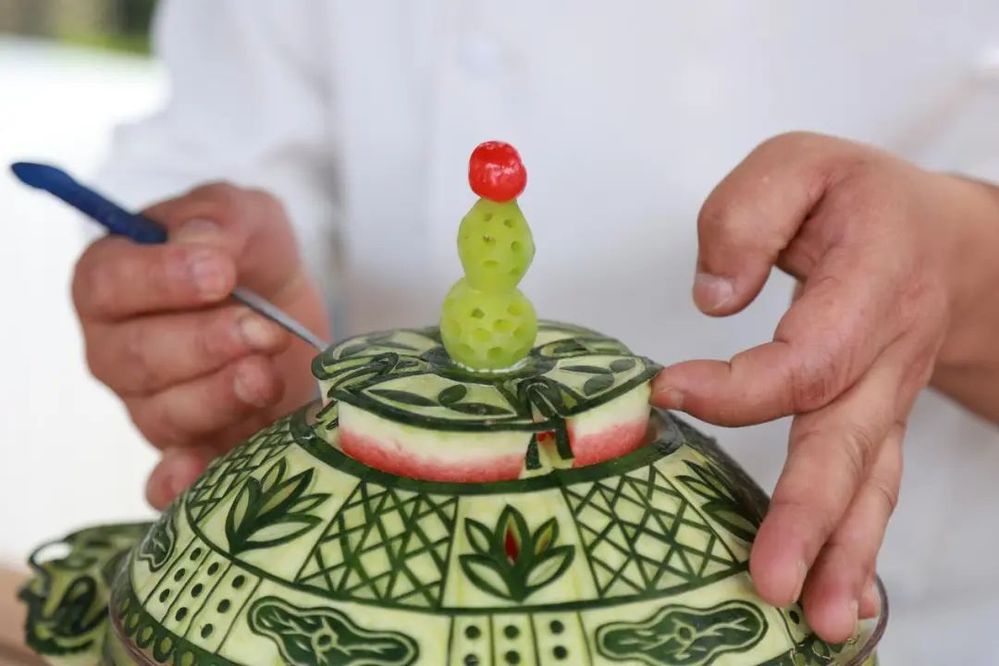 活動現場精心設置25個非遺美食展位,多位非遺傳承大師現場展示精湛廚藝。細如發絲的文思豆腐、精雕細琢的食雕作品、鮮而不膩的獅子頭、粒粒分明的揚州炒飯、皮薄餡多的湯包,引得賓客紛紛駐足品鑒。