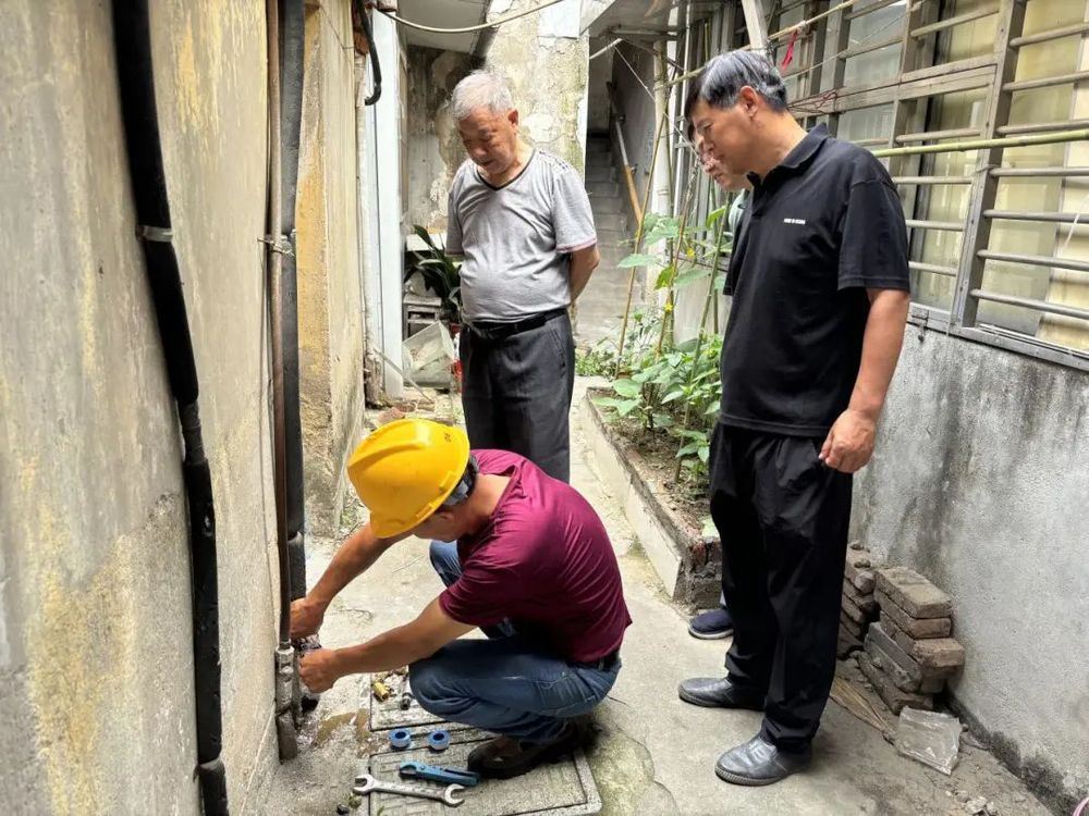 經現場查勘后,“管子鉗突擊隊”發現老年活動室用水不便的原因在于距離水源較遠且室內未安裝水龍頭。這些問題不僅影響老年活動室日?;顒娱_展,更成為沙口社區治理的揪心事。長江水務搶維修中心立即制定接水方案,組建專業施工隊伍,從水源確認、管線鋪設到施工實施開展全鏈條志愿服務,累計鋪設PE管30余米,并在活動室內安裝水龍頭1處,有效滿足了社區老年活動需求。改造過程中,“管子鉗突擊隊”隊員們主動向社區居民普及安全用水知識、解答用水疑問,以貼心服務贏得暖心回應。