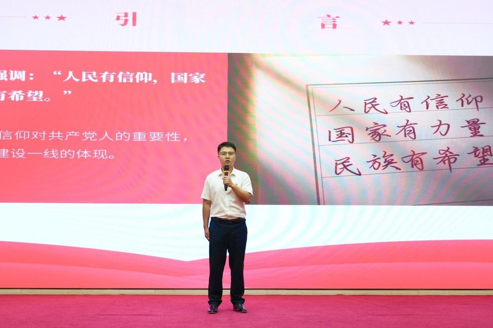 為深入學習宣傳貫徹習近平新時代中國特色社會主義思想,更好激勵廣大干部群眾奮力推進中國式現代化揚州新實踐,6月20日下午,集團黨委舉辦2025年度“我是黨課主講人”學習宣講競賽。市委組織部副部長孫明、市國資委黨委副書記華占軍、市委宣傳部理論處處長王振祥、集團黨委副書記徐飛出席活動并擔任評委。集團黨群部負責人、機關黨支部書記、下屬單位黨組織主要負責人、分管負責人、基層黨務工作者及近2年新入黨黨員約160人參加活動。