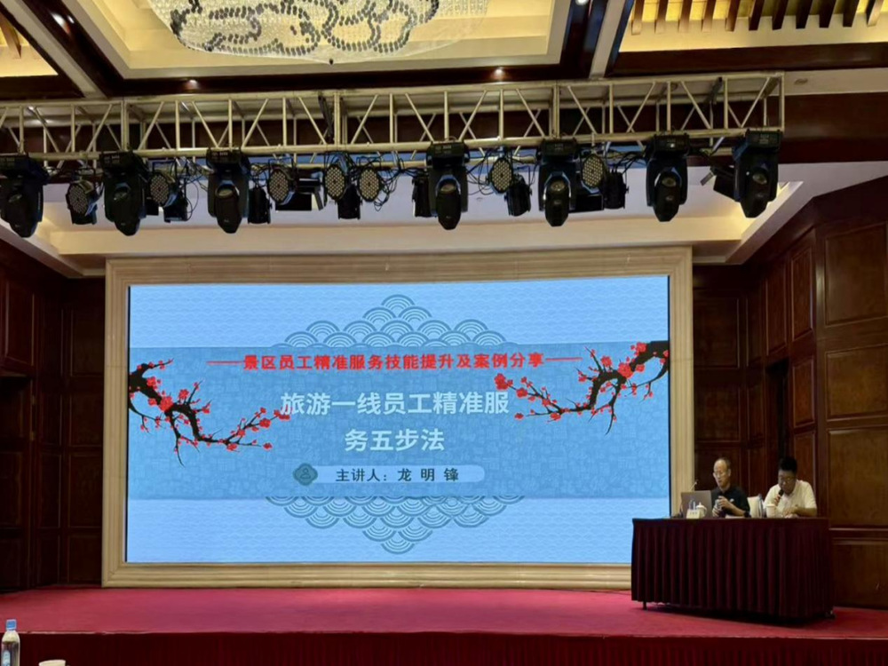 培訓內容緊密貼合實際工作需求,涵蓋游客需求的新變化洞察、景區精準服務五項新技能以及典型案例實戰演練。來自揚州大學的龍明鋒教授作為主講嘉賓,憑借其在景區運營管理、旅游規劃等領域深厚的理論功底與豐富實踐經驗,深入剖析當前旅游市場趨勢,分享了從智慧景區建設到游客個性化服務定制等前沿理念。培訓過程中,龍教授結合多項省部級科研項目與旅游規劃項目經驗,生動解讀如何將服務技能轉化為游客滿意度提升的具體行動,為參訓人員帶來諸多啟發。