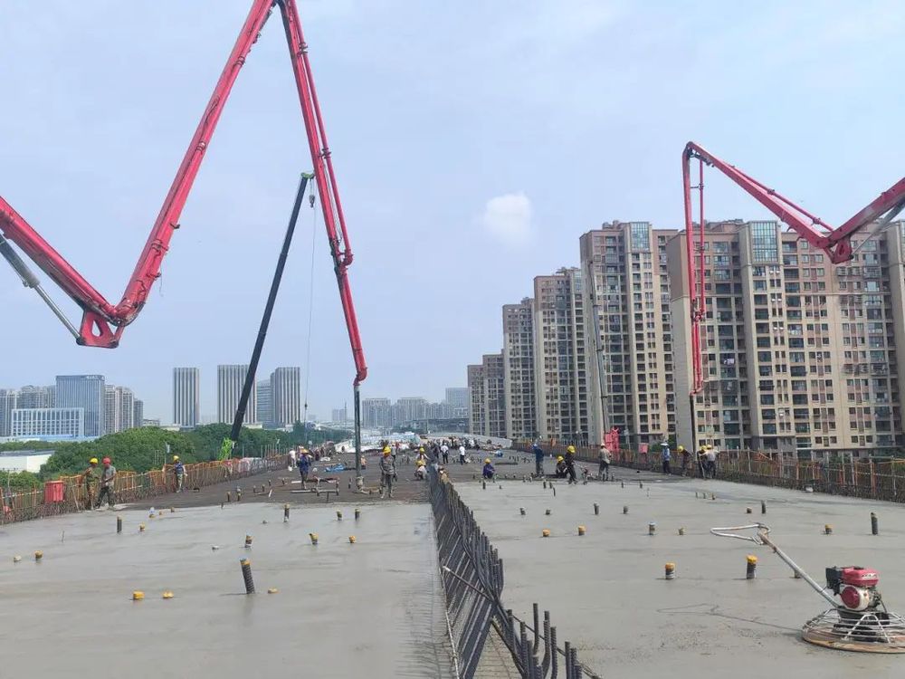 歷時340天,8月6日下午,潤揚南路快速化改造工程(開發路-華揚西路)段長2495米的高架橋完成最后澆筑,自此高架段全線貫通,標志著項目建設取得關鍵突破。