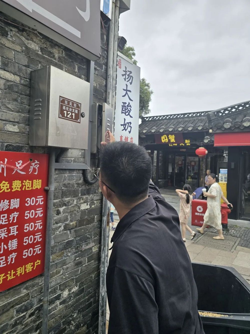 上午9點,商戶們紛紛打開空調,街區瞬時用電負荷達到峰值。王姐,您這后廚的插線板都發燙了!在老字號藕粉圓子,魯毅蹲在墻角,用測溫槍掃描著老式插線板——38.6℃的紅色數字在屏幕上跳動。上周臺風導致電壓波動,您這線路老化得徹底換了。他掏出手機調出維修隊排期表,當場幫商戶預約了電工。臨走時還不忘交代商戶:“高溫天電器就像人一樣會‘中暑’,必須定時檢查。”邊說邊在商戶群里推送《高溫用電十誡》。